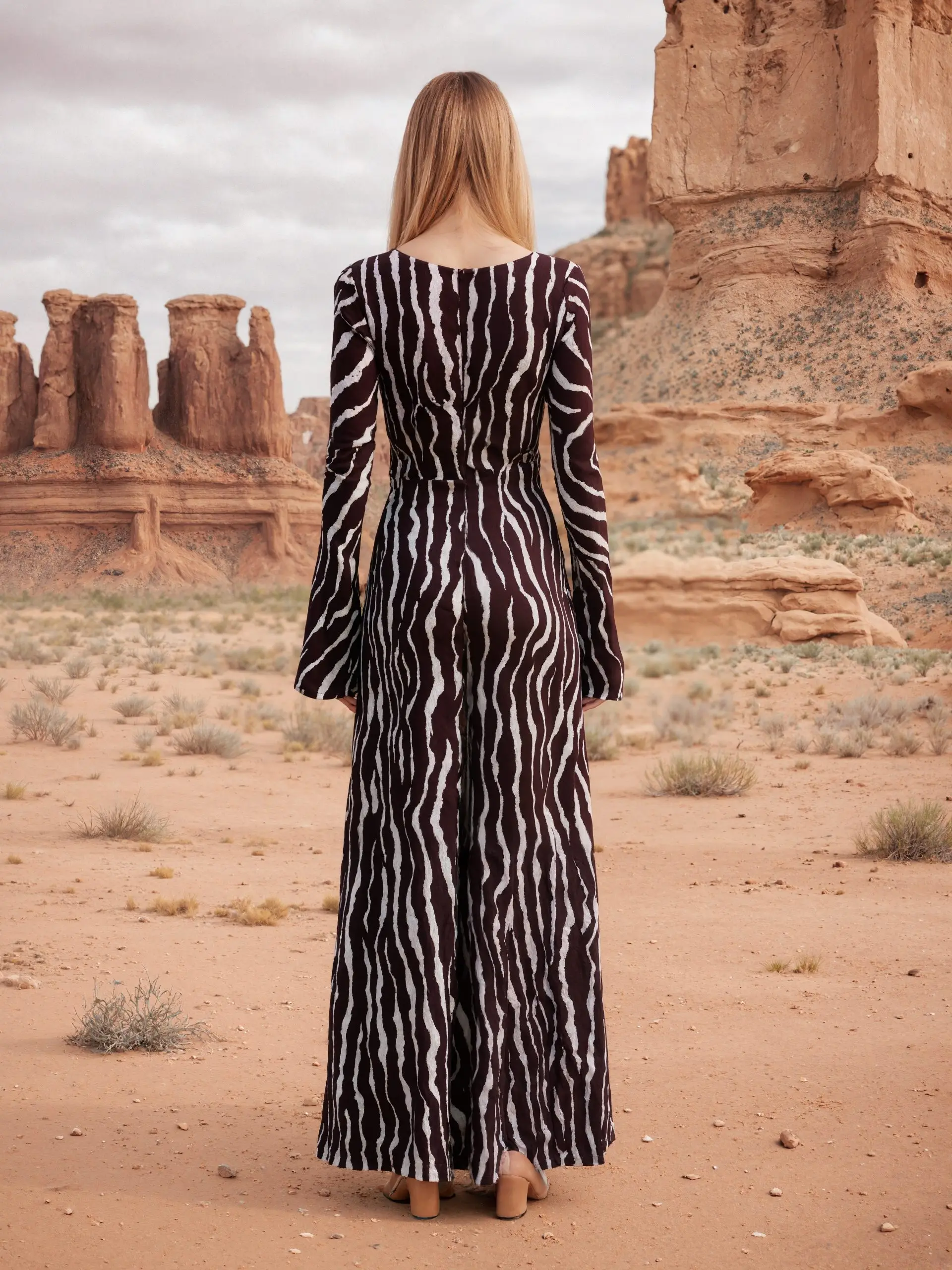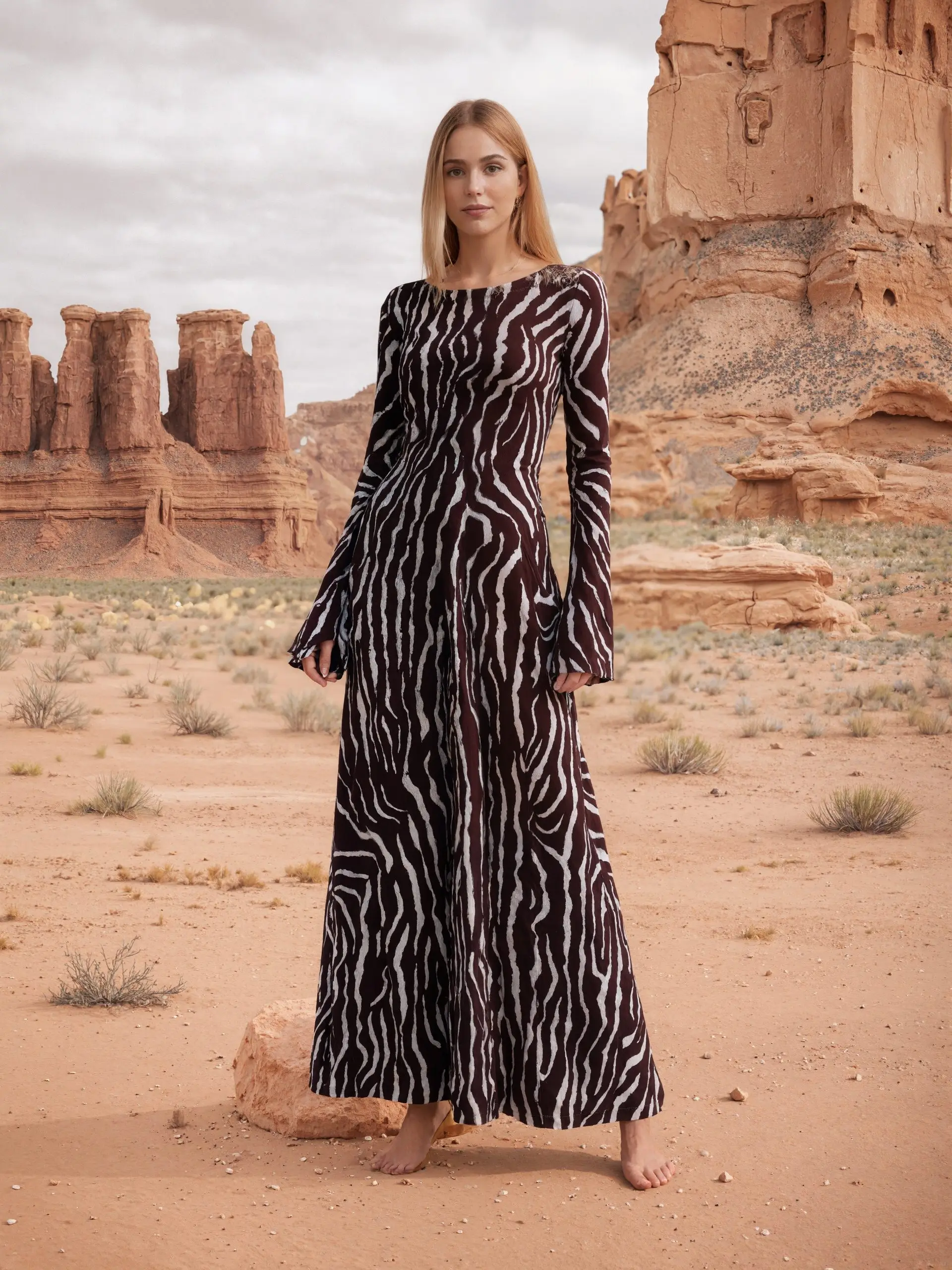 Striped Print Fashion Loose Dress Casual Round Neck Long Sleeve Female New Wavy Bell-Sleeve Off Shoulder Maxi Dress